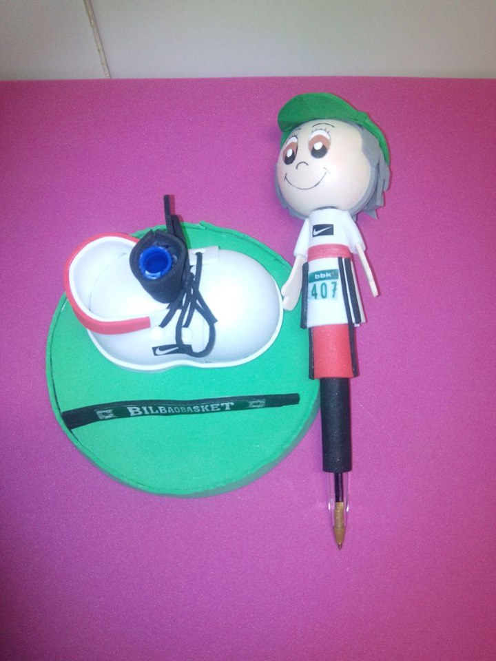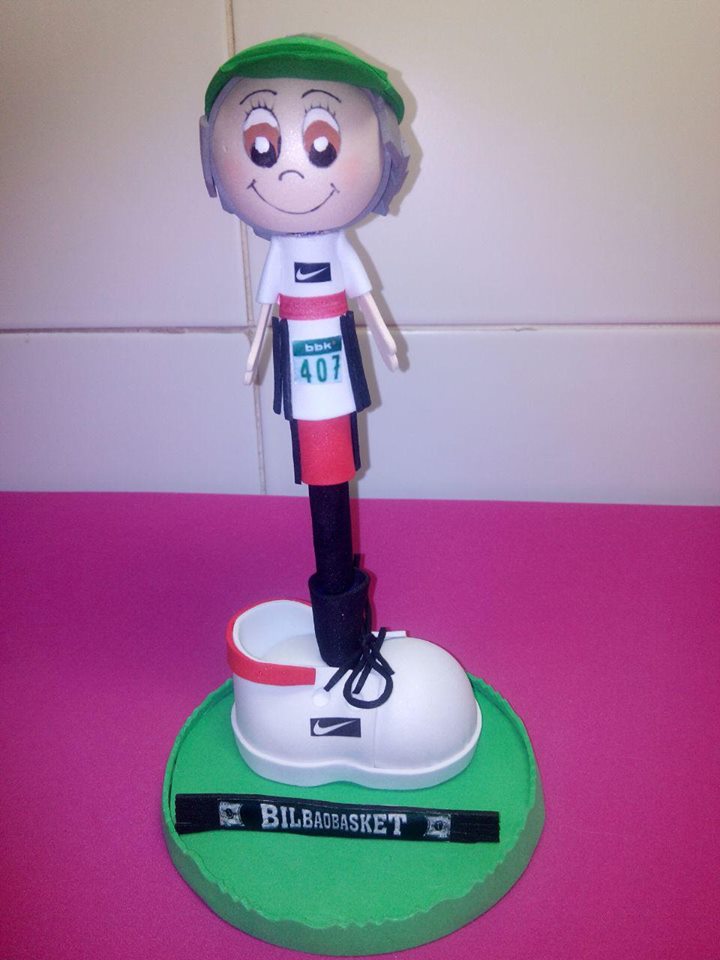 Fofuboli de un corredor con el dorsal y el uniforme del club de atletismo. Además con adorno de bufanda del Bilbao basket.